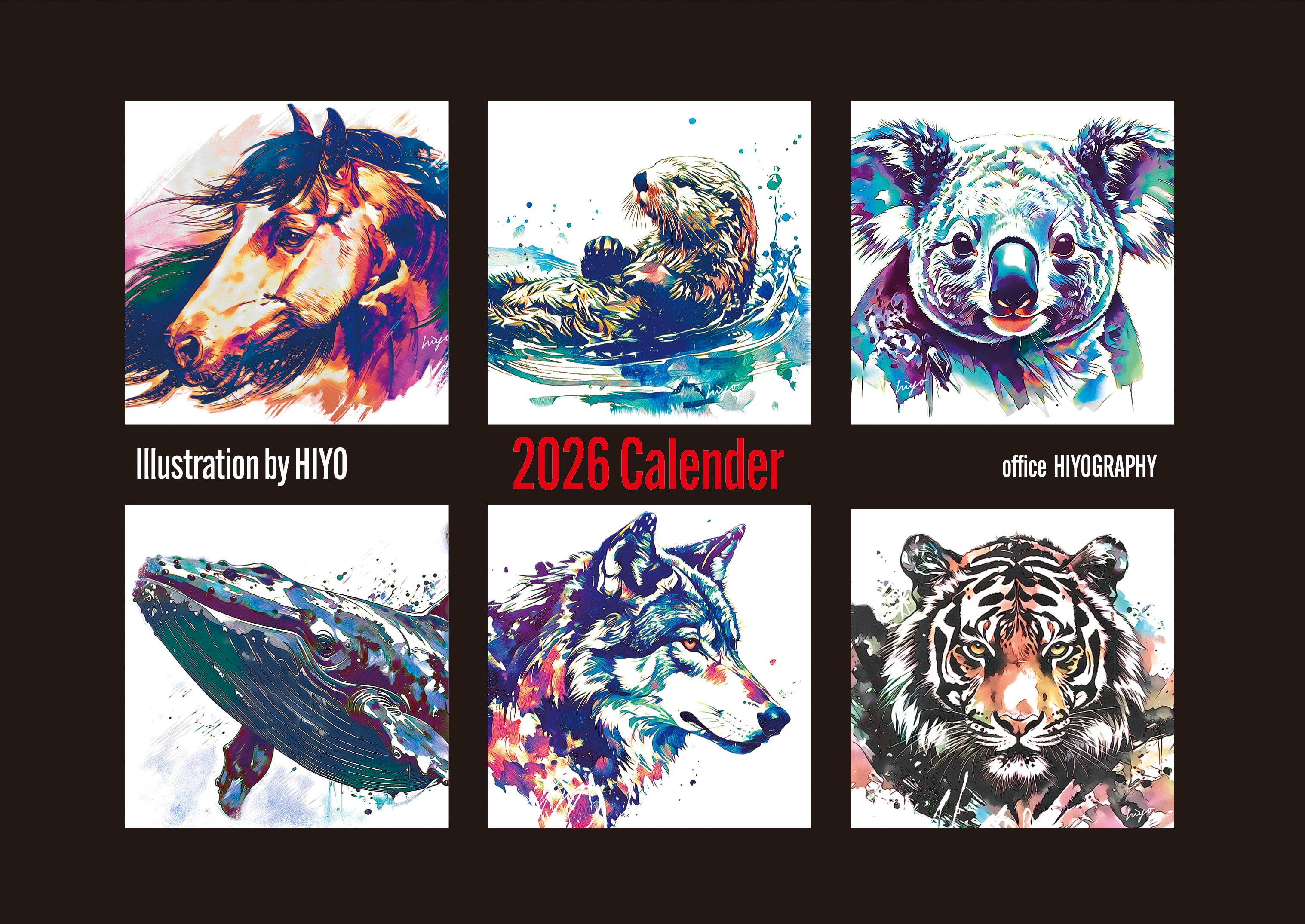 干支の馬をはじめとした、筆タッチで描かれた動物イラストのカレンダーです。