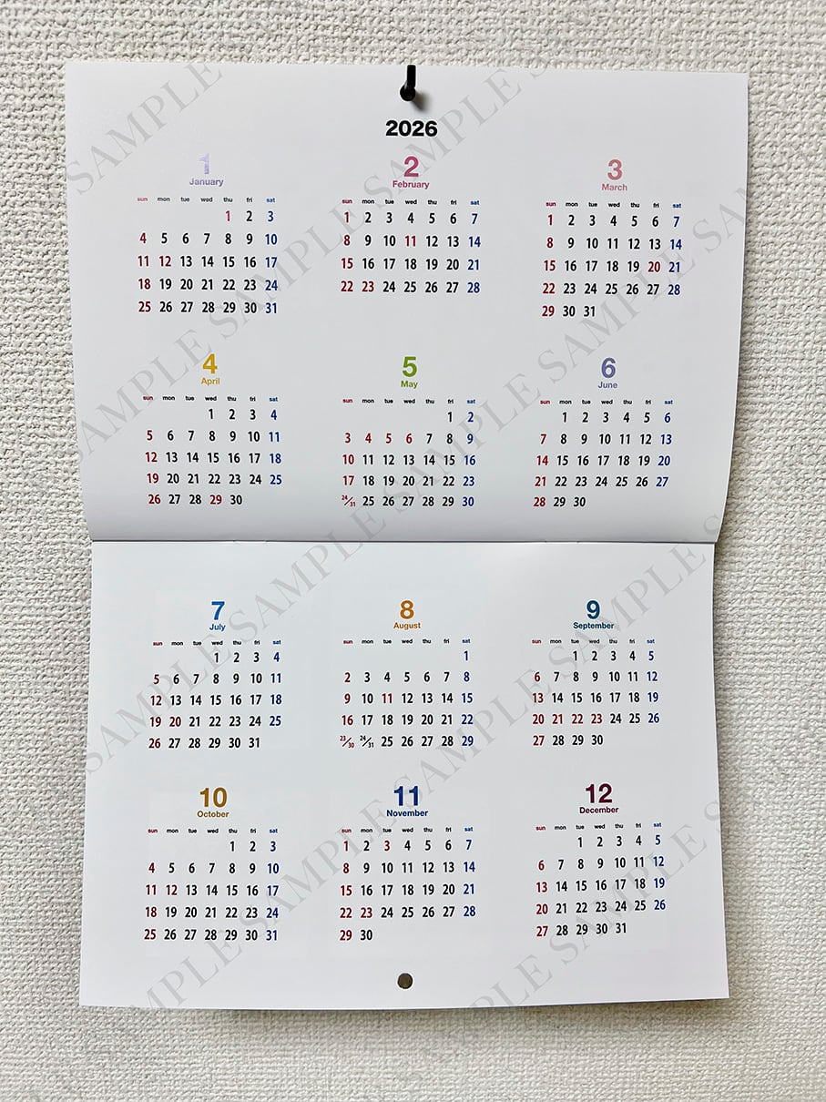 2026年版の壁掛けカレンダーです。